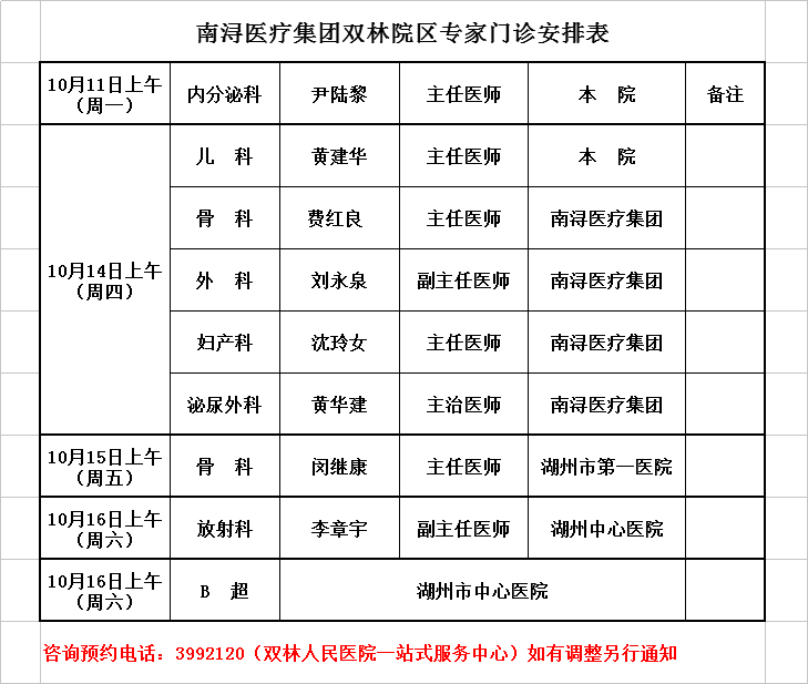雙林醫(yī)院專家排班2021-10-11/2021-10-17