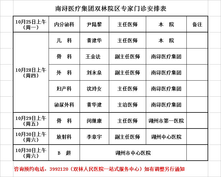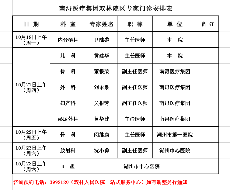 雙林醫(yī)院專家排班2021-10-18/2021-10-23