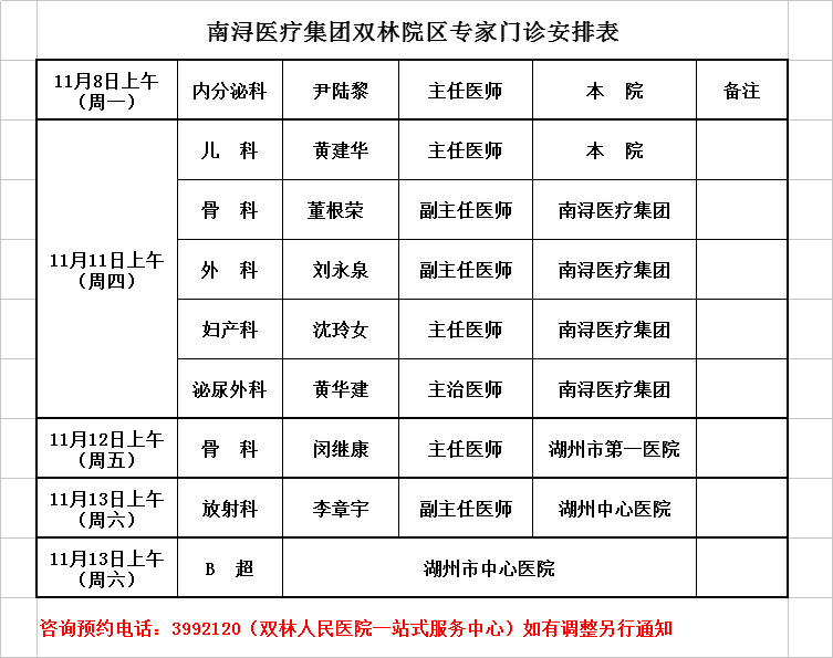 雙林醫(yī)院專家排班2021-11-1/2021-11-7