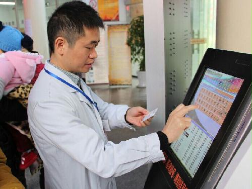 引導(dǎo)市民自助掛號(hào)機(jī)掛號(hào)、測(cè)量血壓、取票咨詢,陸建龍的志愿者工作簡(jiǎn)單而又忙碌。