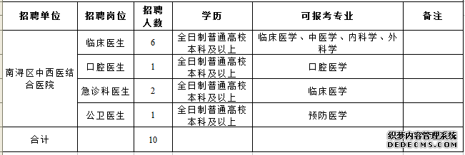 2016年南潯區(qū)中西醫(yī)結(jié)合醫(yī)院招聘應(yīng)屆畢業(yè)生職位信息表